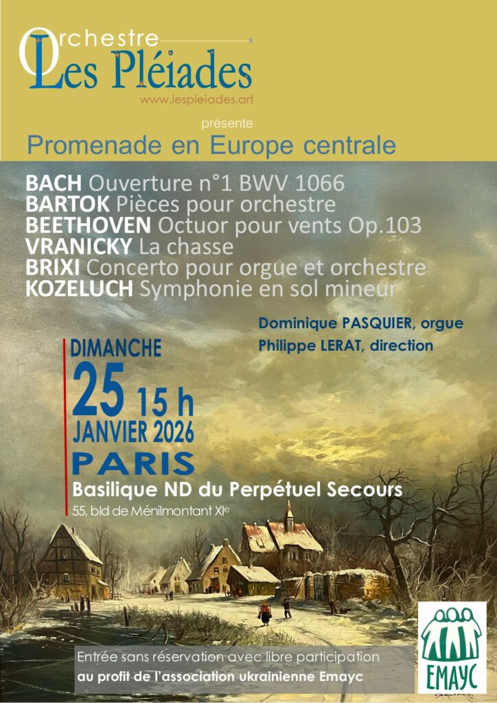 Le dimanche 25 janvier à 15h, notre basilique accueillera l’orchestre Les Pléiades, pour un concert intitulé « Promenade en Europe centrale » :