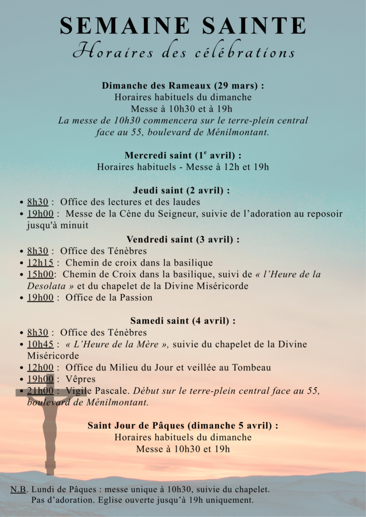 Voici les horaires de la Semaine Sainte :